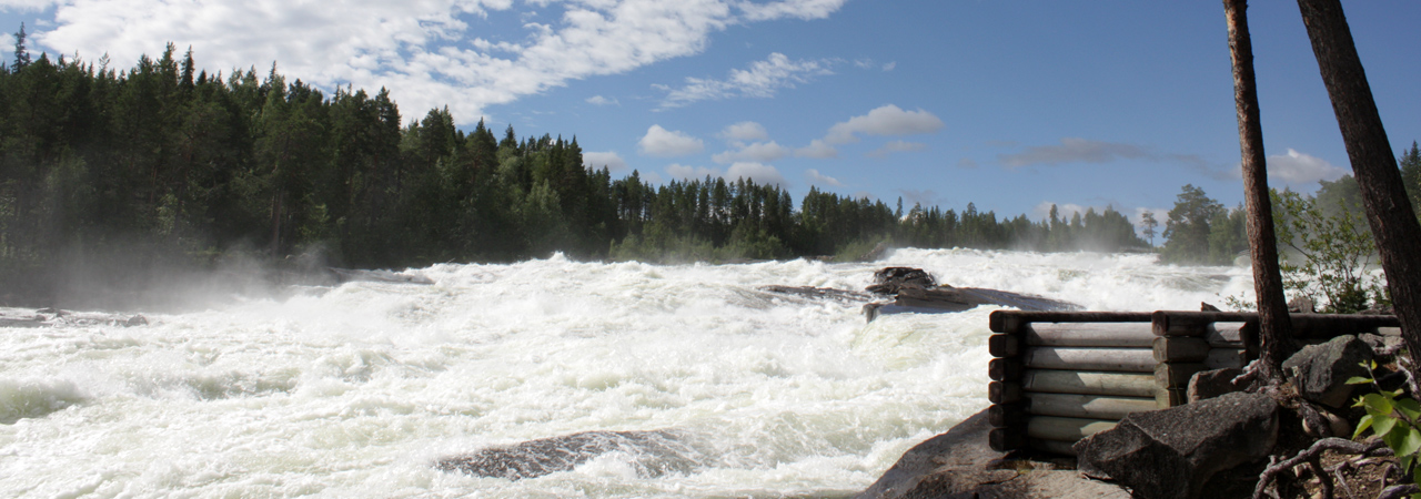 Storforsen i Älvsbyn i Norrbotten är en hisnande upplevelse där du kommer nära de virvlande vattenmassorna. Vandra längs slingrande stigar och utsiktsramper och njut av den dramatiska naturen.