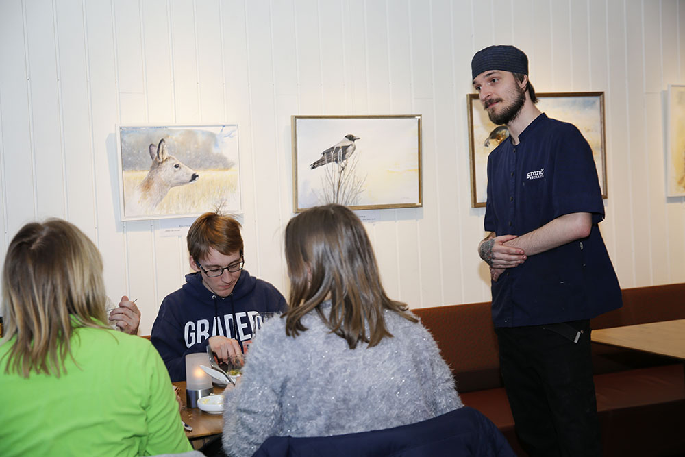 - Vår mat speglar skogens genuina smaker. Klassiska svenska råvaror som smaksätts med bär, svamp och örter direkt ut skogens rika skafferi, säger kocken Emil Wenngren som tillåts experimentera med maten till besökarnas stora glädje. Att servera ren till en fransman eller älg åt en japan är som att kommunicera med gästens känslor. Via smakupplevelserna.