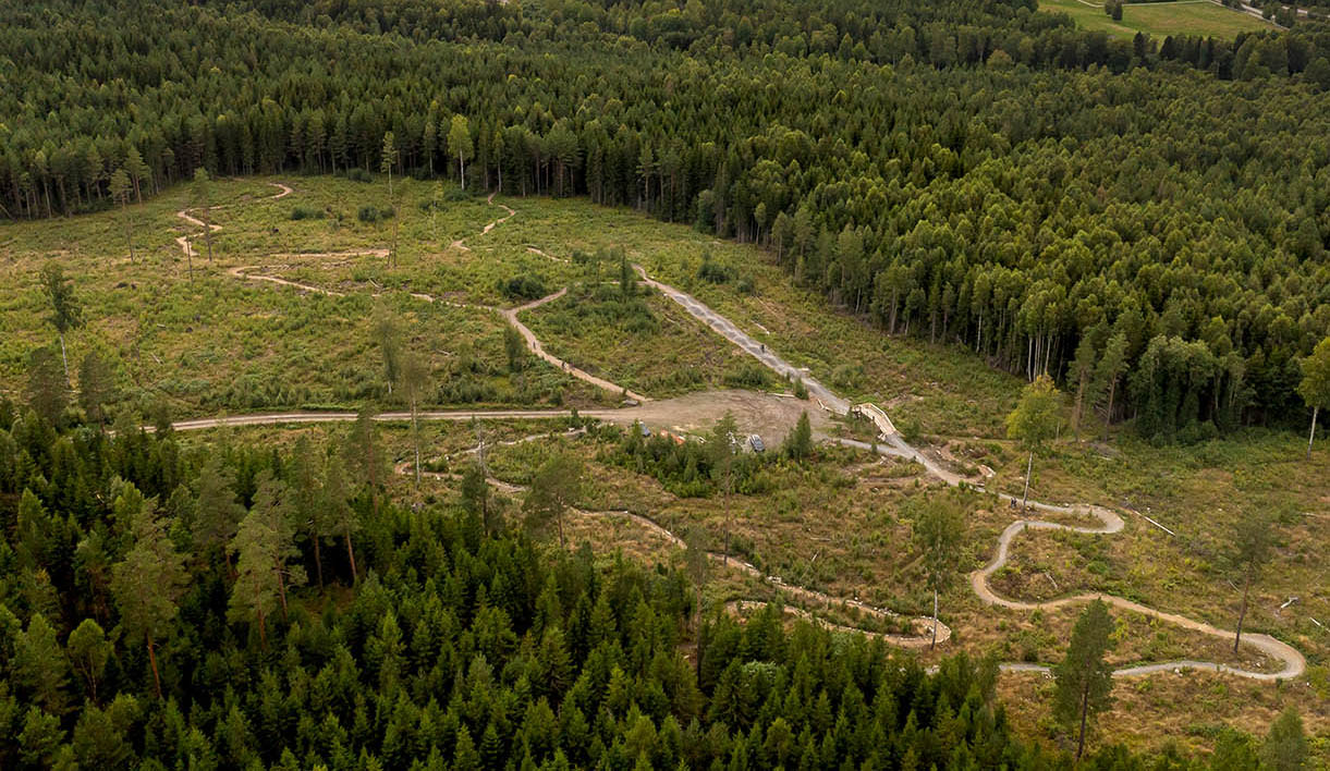 Banan, som startar högst upp på Kottaberget, slingrar sig ner genom både hyggen och skogslandskap där naturliga stigar och hinder blandas med handbyggda lösningar. En sträcka som mäter 1,3 kilometer.