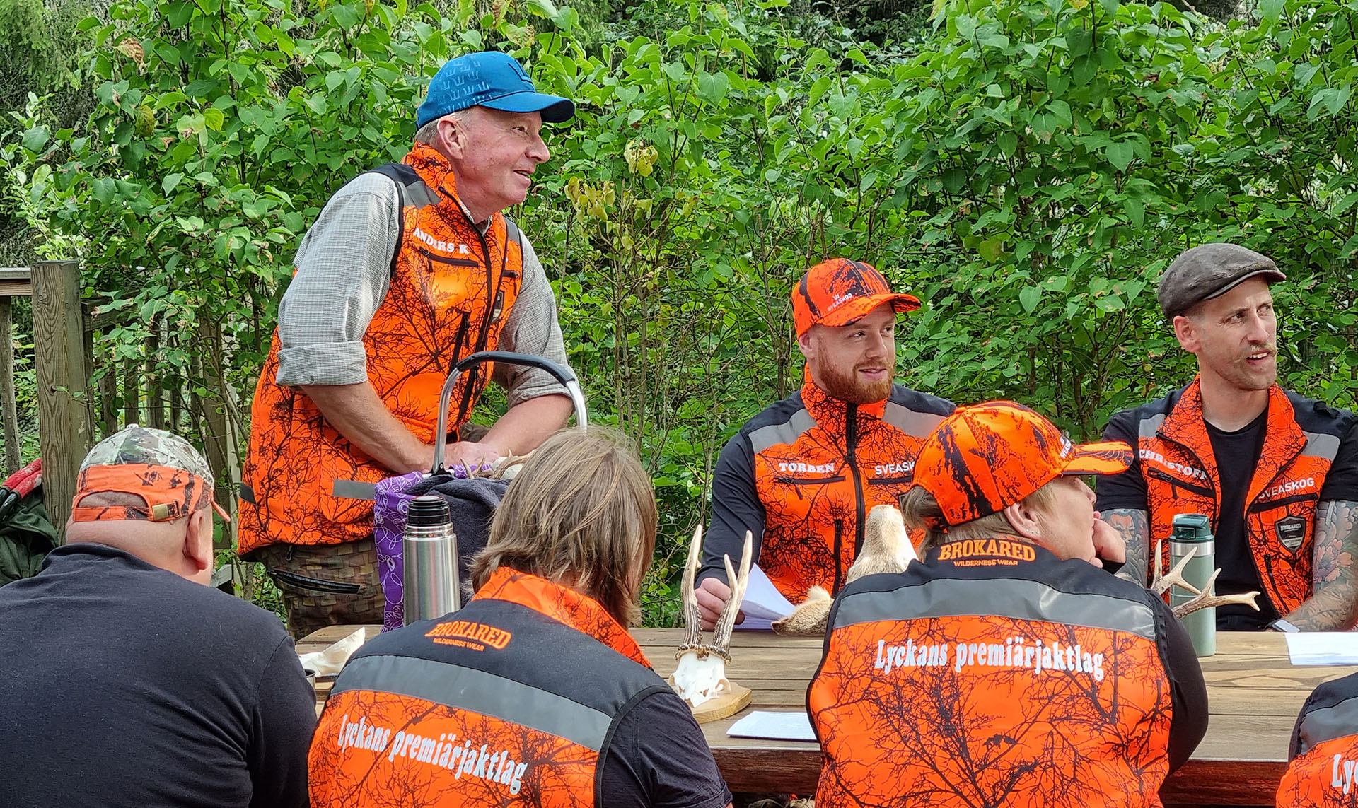 Stellan Eriksson är jaktledare och håller i kvällens genomgång. Under en timme går han lugnt och metodiskt igenom förutsättningarna. Allt ifrån vilka djur som är lämpliga att beskatta till hur passen fördelas, och hantering av en eventuell skadeskjutning där viltet inte faller på platsen. Många frågor från deltagarna hinner också besvaras.