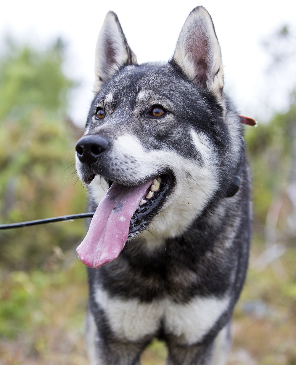 De första björklöven har singlat ner, och mjölkörten som kantar vägen är utblommad och har stora, ulliga tofsar. Vi är på väg ut till ett skogsområde vid havet (några kilometer utanför Kalix) för att träna den sexton månader gamle jämthunden Gizmo inför stundande jaktpremiär.