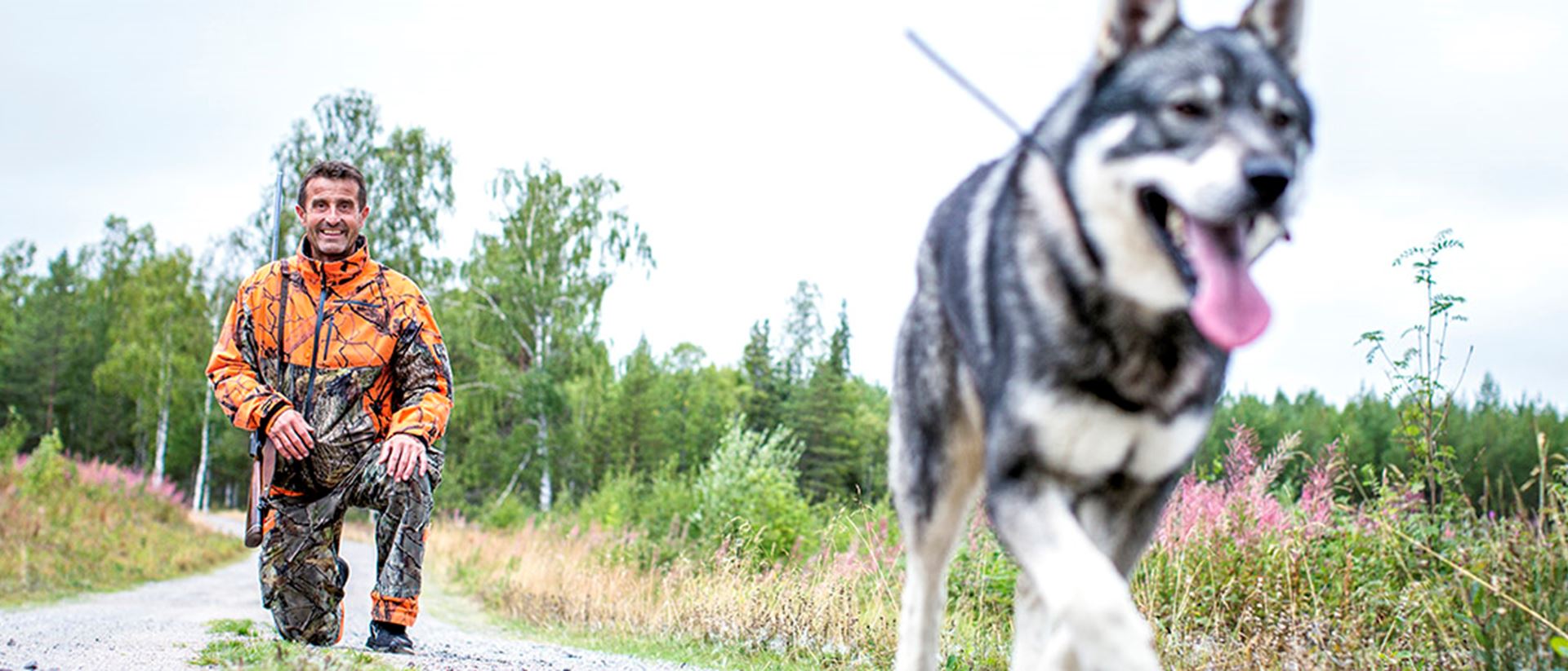 – Man går ett par hundra meter, skickar iväg hunden och stannar alltid när den kommer tillbaka; sedan gör man om proceduren. Hunden ska söka och följa sin förare ända tills den får korn på en älg, då kan det bära iväg vart som helst.