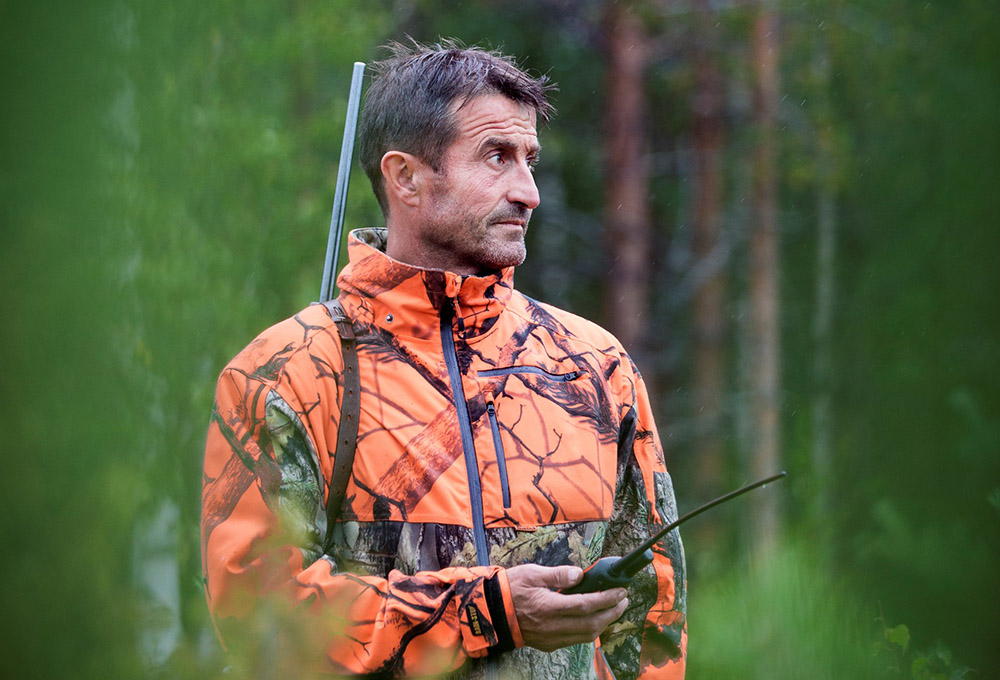 – När man ser på pejlen att han fått upp ett spår som han tycker är intressant tar man det lugnt och väntar. Mycket av hundförarens tid går ut på att stå och vänta och lyssna. Om man hör ett skall vet man att han hittat något.
