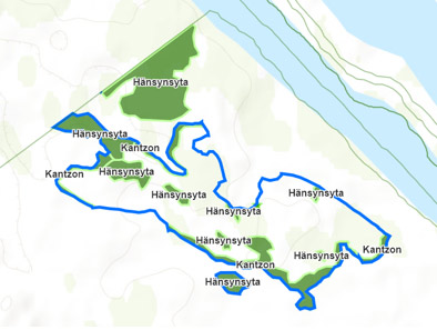 I kartverktyget kan du zooma dig ner till det område du är intresserad av för att se om det där finns några avverkningsanmälningar från 1 januari 2017 och framåt. Dessa är markerade med en blå ytterkant som avgränsar avverkningen och är dessutom kompletterade med de hänsynsytor som avses att lämnas.