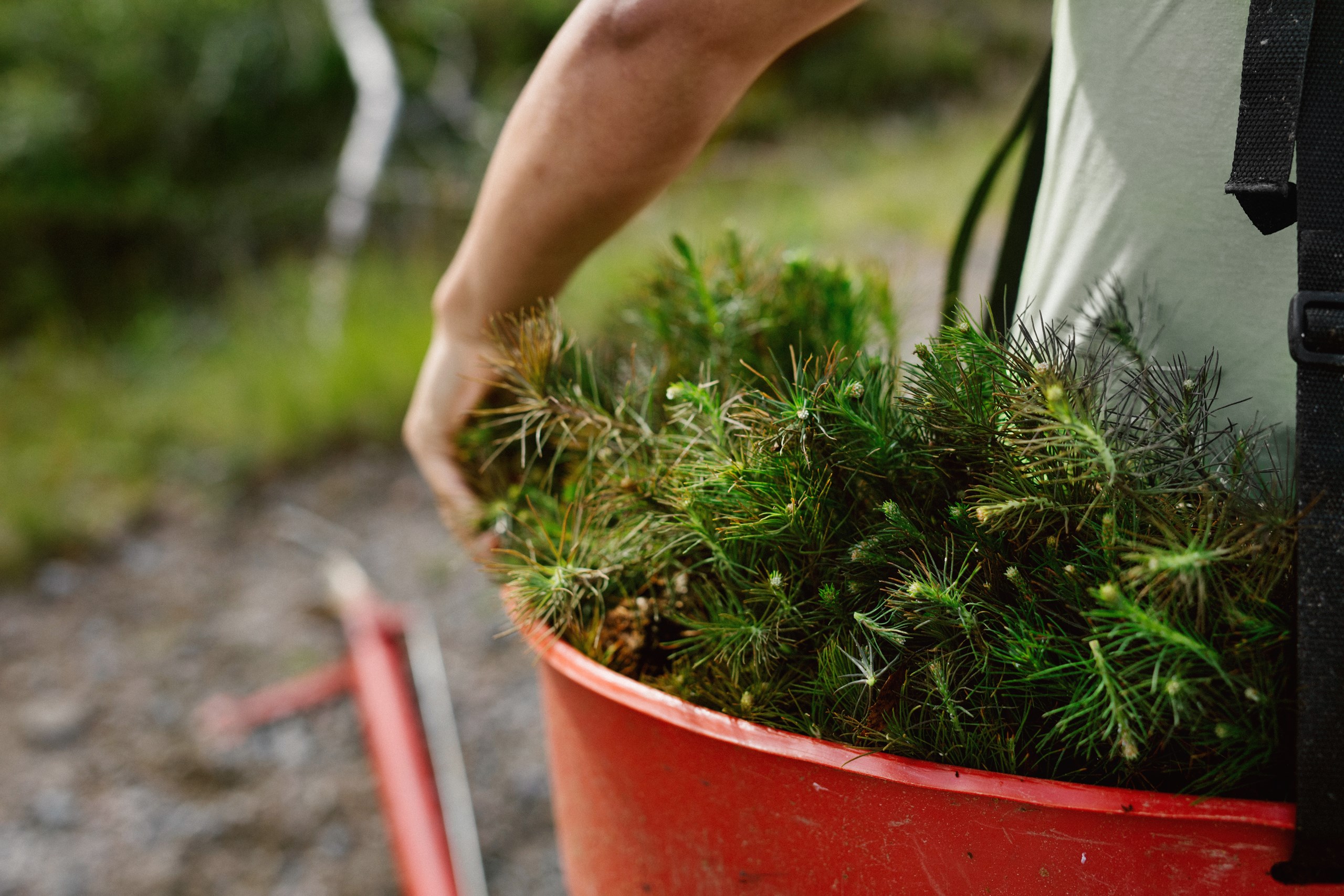 Plantor är känsliga för torka, solljus och kyla och vi hanterar dem varsamt för att de inte ska komma till skada. Vid planteringen väljer vi ut den bästa platsen att placera plantan på. Den allra bästa platsen att plantera på är en omrörd mark där jorden blottlagts. Här får plantan de bästa förutsättningarna för att överleva och växa på lång sikt.